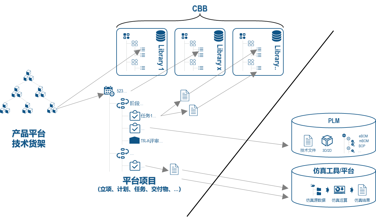 定义和建立基于TBB-CBB的技术货架结构,实现线上共享及资产安全管理,支撑企业从ETO向CTO转型