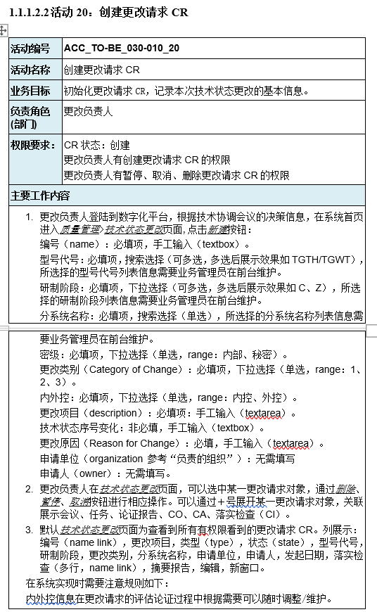 操作层(L5):L5级业务流程是以Word文件的形式,对L3/L4级业务流程在用户操作层面的定义和描述,展开详述每个业务活动下负责角色从登陆系统开始如何一步步的完成操作生成数据,同时定义详细的数据模型(schema)。L3/L4级业务流程图中的每一个活动,对应到L5级文件中的一个章节。典型的L5示例图如下。