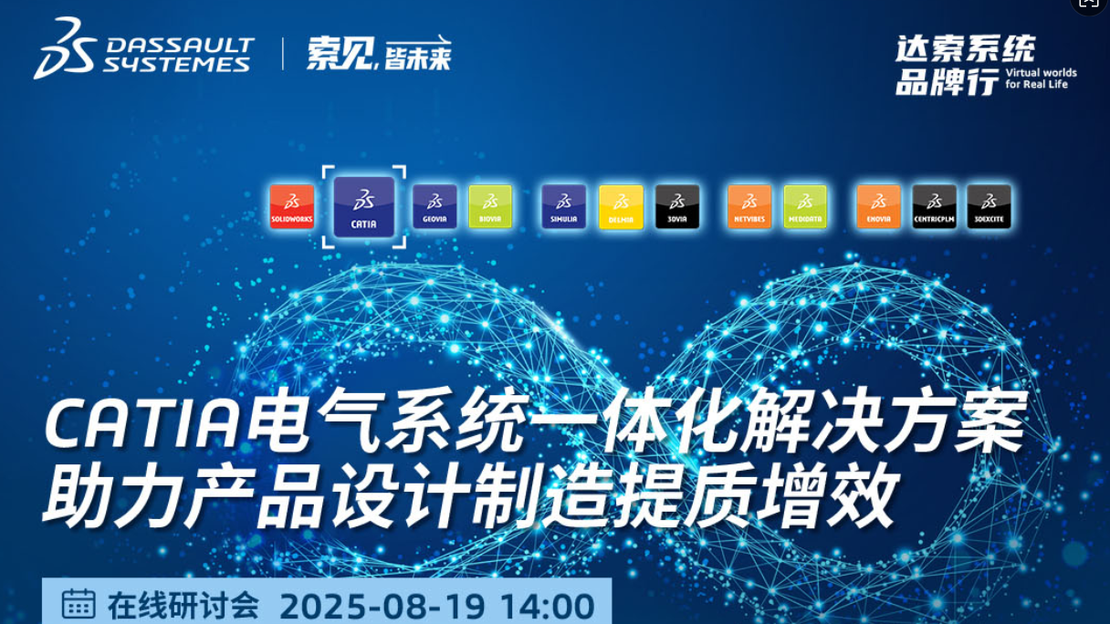 2025-07-28邀请函 | 8月19日达索系统CATIA电气一体化在线研讨会,3DE平台破局“孤岛式”研发了解更多