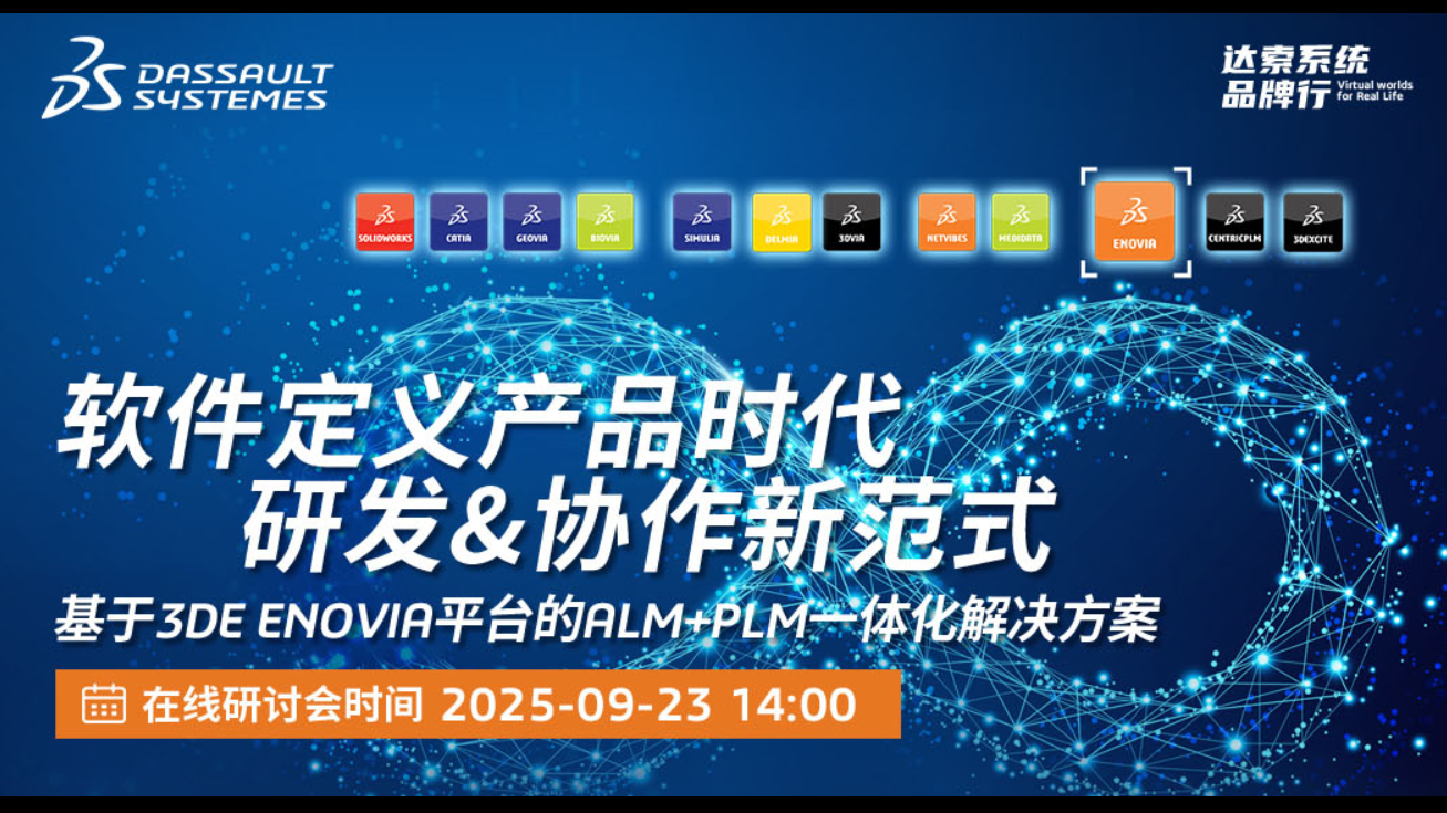 2025-09-16邀请函 | 9月23日达索系统线上研讨会,软件定义产品时代研发&协作新范式了解更多