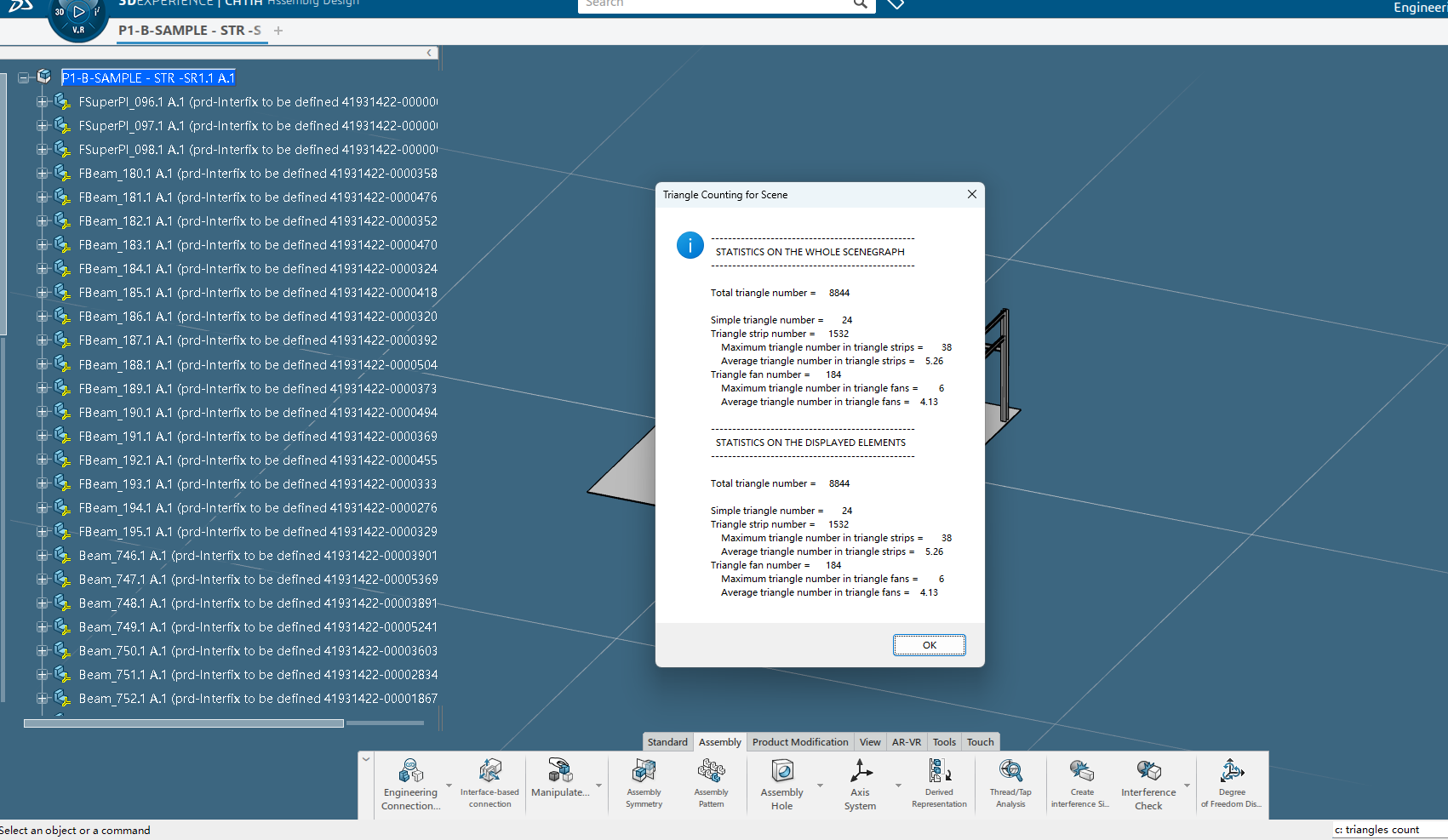 三角形计数(c:triangles count),此命令对加载模型的所有三角形进行计数。无论用户的设置如何,都会进行三角形计数(屏幕外部的元素都会被计数)。该工具可以很好地了解所打开的模型。