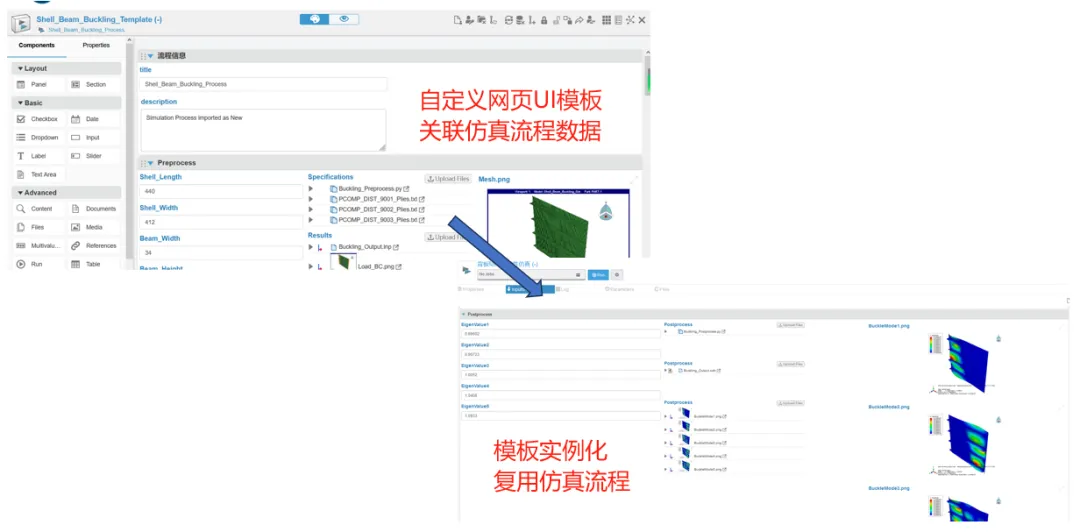通过制定和使用流程模板,可以规范仿真工作的步骤和顺序,避免遗漏和混乱。工作人员可以按照模板进行仿真工作,提高工作效率和准确性。3DEXPERIENCE平台支持用户自定义网页UI,将仿真流程中的参数、文件提取到网页中,通过自定义界面规范流程操作的输入输出数据。