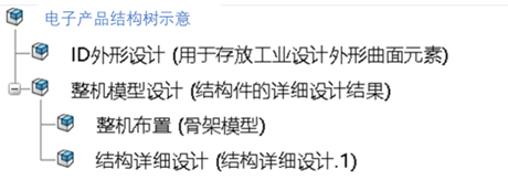 其中ID外形节点的Physicial Product节点被分配给造型设计工程师,用于在产品研发初期基于立项资料进行ID模型的创建。整机模型设计节点被分配给整机结构设计总布置师(有的公司可能因为业务特色没有此角色,可以直接分派给结构设计工程师)。接下来我们通过一些关键步骤的演示,来说明一般设计过程的重点步骤。
