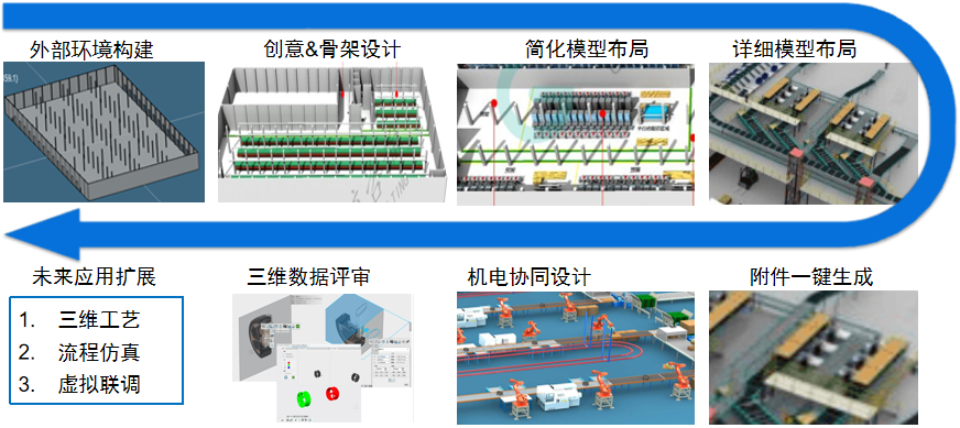 根据规范的业务流程,按照标准的参数设置&准则判定,实现设计过程自动化,包括自动简化模型布局、自动匹配详细模型、自动物料需求下发等。