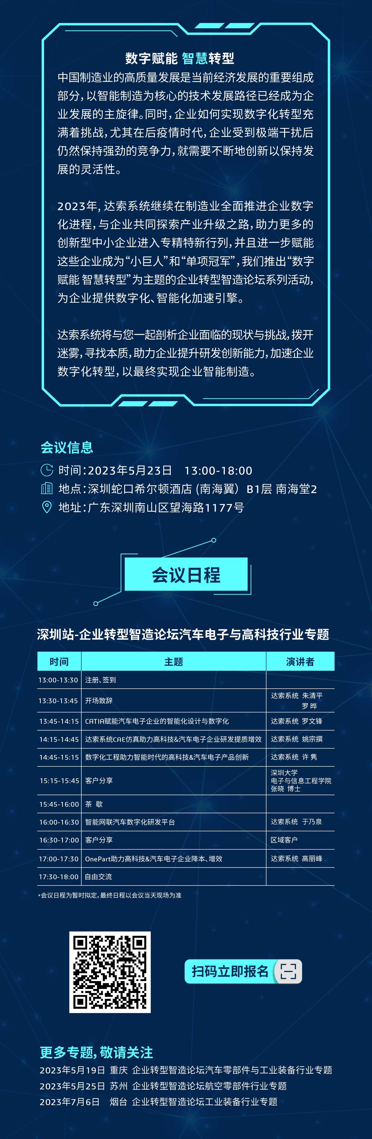 【摘要】:5月23日深圳,企业转型智造论坛汽车电子与高科技行业专题,诚邀您参会!
