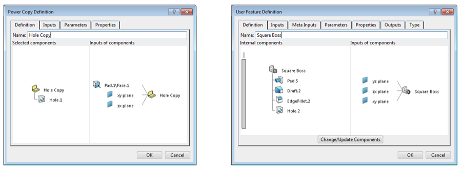 CATIA特征模板包括超级副本和用户特征,大多数的CATIA设计角色支持特征模板定义和重用功能,方便应用。