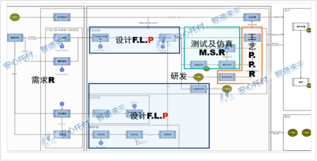该项目建设主要聚焦在以IPD体系为主的产品研发业务领域的能力建设,主要涵盖了从市场需求到产品设计再到工艺制造的完整开发流程,并辐射支撑产品上下市、生产制造计划、市场订单、供应商协同、财务管理、售后资料等相关领域的业务。在建设过程中将研发领域内的部分小系统的业务统一整合到该平台,并通过该平台打通了与市场端、营销端、财务管理、采购端、制造执行端、售后服务端等相关系统的集成。