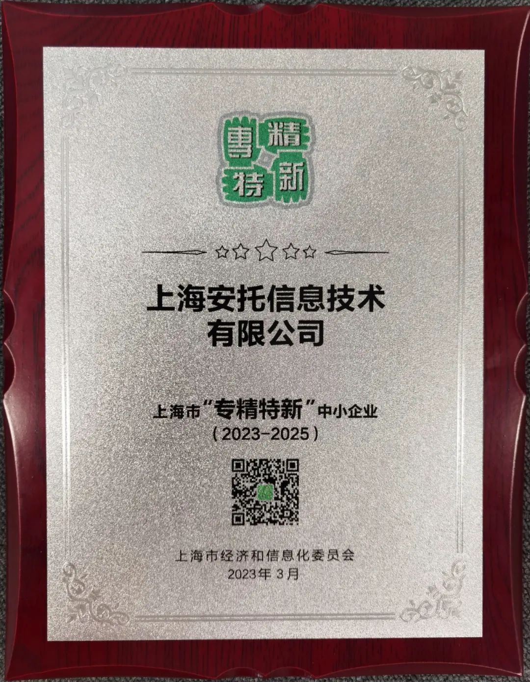 近日,上海市级“专精特新”企业授牌仪式正式举办,上海安托信息技术有限公司凭借在制造业深耕多年的技术实力、在数字化建设领域的专业服务经验、在智能制造的众多场景落地,荣获上海市“专精特新”中小企业认定。