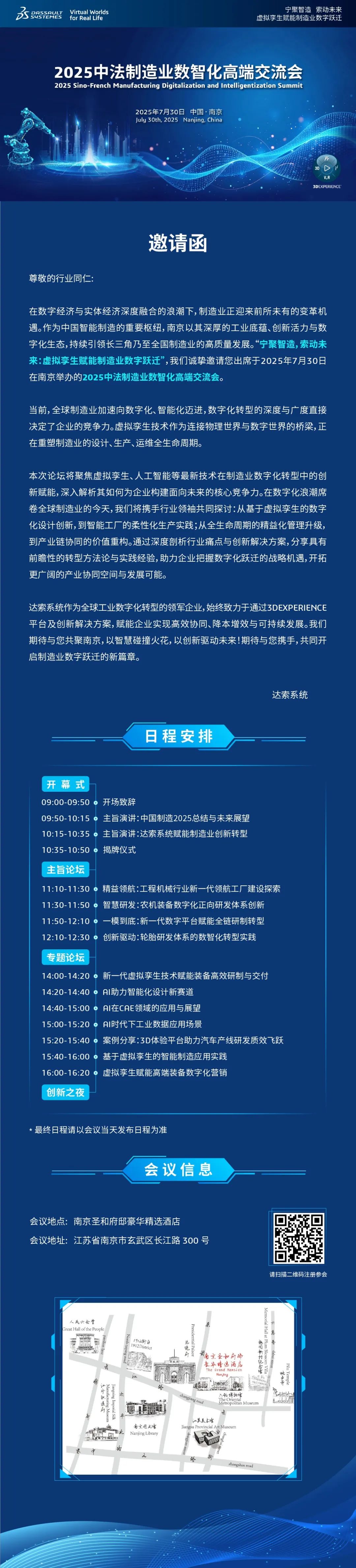 邀请函 | 7月30日2025中法数智化交流会,共探虚拟孪生+AI驱动制造升级