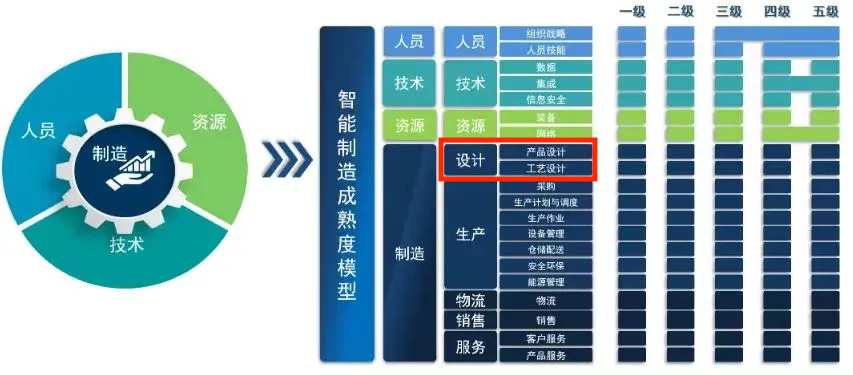 该智能制造能力成熟度场景涵盖人员、技术、资源、制造4个领域,安托参与了制造领域中设计子域中的产品设计和工艺设计。