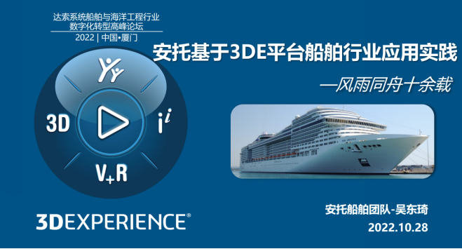 作为达索体系内船舶与海工领域实施经验丰富的服务商,安托船舶与海工行业技术总监吴东琦先生,受邀发表以“安托基于达索3DE平台在船舶行业的最佳实践-风雨同舟十余载”为主题的精彩演讲。在分享安托在船舶与海工行业十余载的拼搏之路的同时,也呈现出了成功交付的傲人成绩。