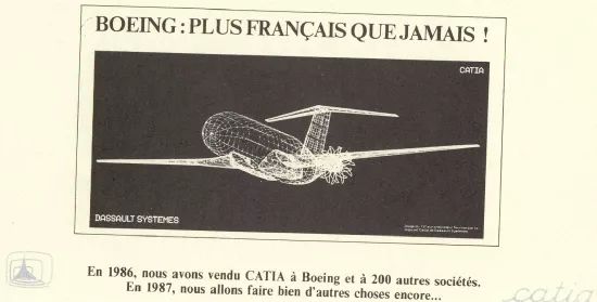 (3)1986年,我们取得了巨大成功:波音公司决定使用CATIA。这一成功反映了我之前的评论。只要我在IBM销售CATIA的功能和特性,我就在1984年和1985年输掉了这场战斗。我的主要竞争对手是内部开发的产品。但当我出售业务转型及其所有好处时,我与波音公司的首席执行官会面。他对我说:“ 告诉我们如何用 3D 设计飞机 ” 。CATIA在后台,我利用我在达索航空的经验来说服首席执行官。另外,坦率地说,他告诉我:“我购买CATIA并与你建立关系,因为你和 IBM 在一起 ”。事实上,波音不可能在没有IBM这样的大公司参与的情况下实现巨大的业务转型。这是与 IBM 合作的价值之一 。