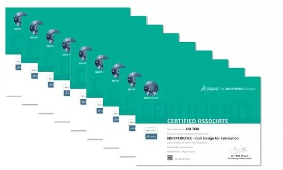 最后所有认证考试通过的人员,获颁达索系统(大中华区)3DEXPERIENCE(3D体验)平台土木工程平台土木工程模块(CIV)认证证书。