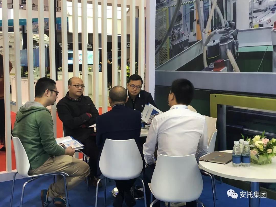 感兴趣的客户和技术专家在展台旁的交流休息区进行深入的交流和咨询。