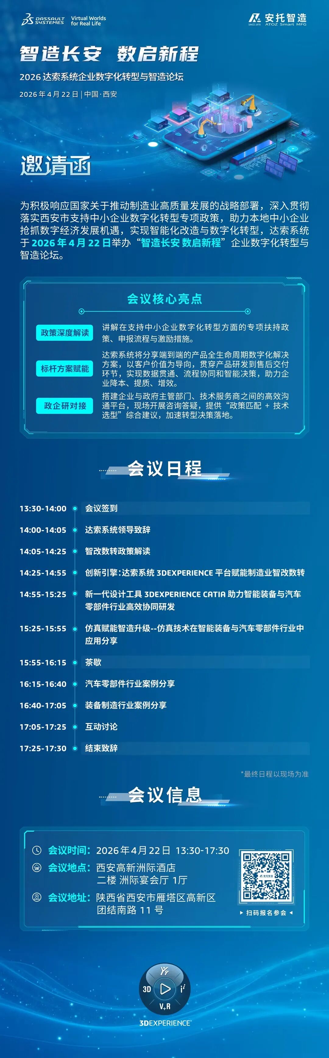 邀请函 | 4.22西安站:政策解读+3DEXPERIENCE平台,达索系统助力中小企业智改数转